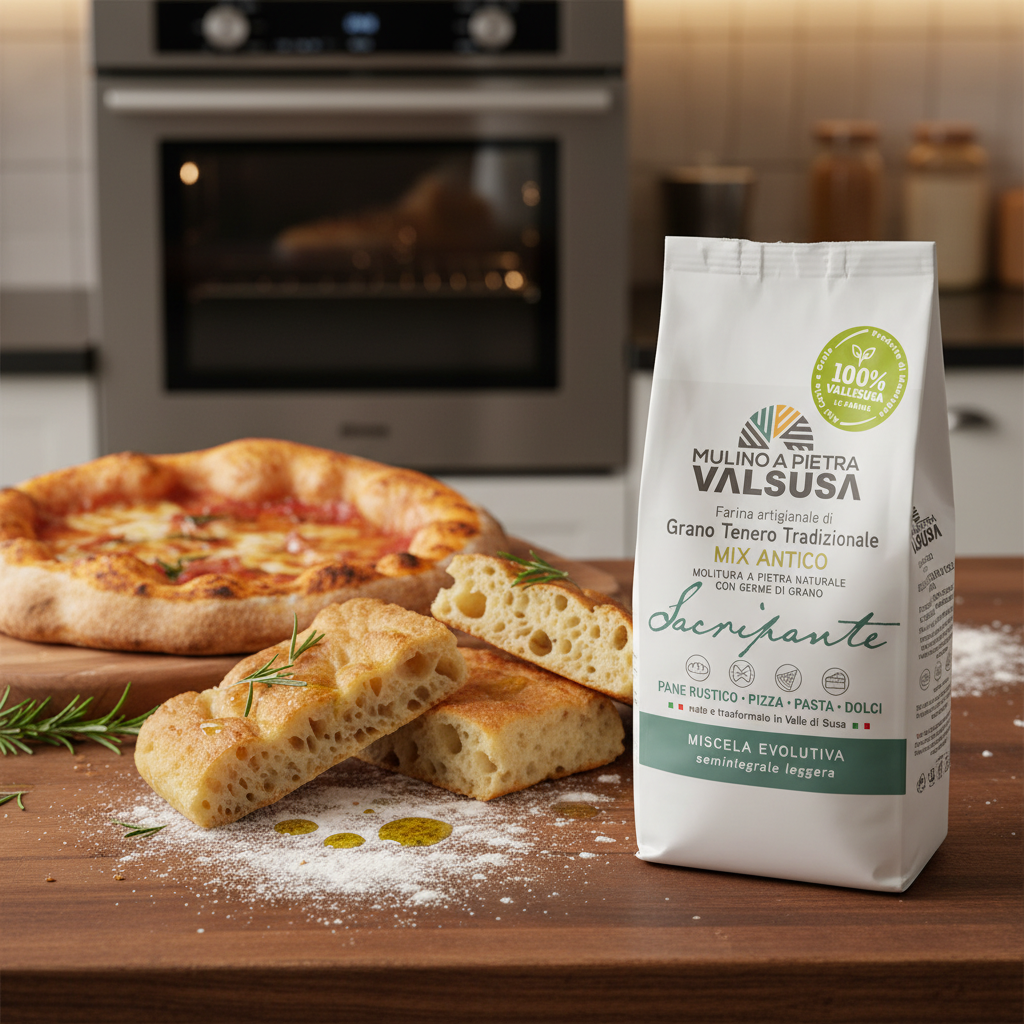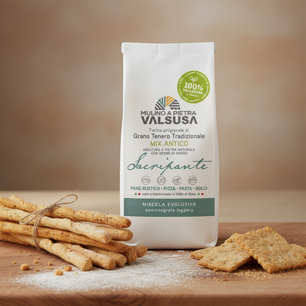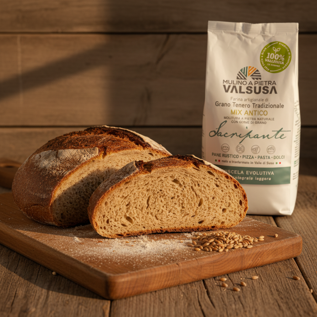 Our Sacripante MIX ANTICO is obtained from the field mixing of ancient varieties, such as Mentana, Apulia, San Pastore, Verna, Gentilrosso, Gamba di ferro, Terminillo, which are grown in the territory of the Susa Valley from Rivoli to Bardonecchia.